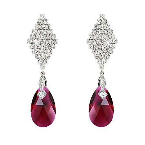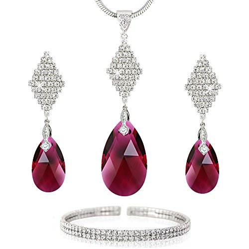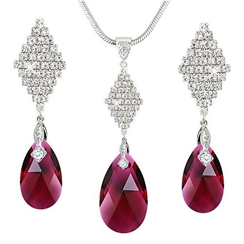 Ruby-Red / Pink tone swarovski element drop set in silver tone. A very pretty item for a special occasion or for that someone special. Gift boxed by Crystal Elegance UK. For pierced earrings. Fast shipping. Comes with designer gift box with black velvet internal lining. This set is not made by the swarovski brand but we have used swarovski crystals in making this set.Feature