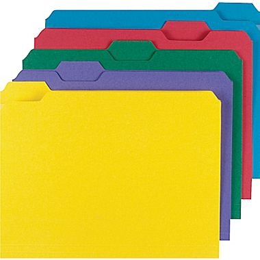 -. Title : Staples Colored File Folders w/ Reinforced Tabs, Letter, 5 Tab, Assortment B, 100/Box