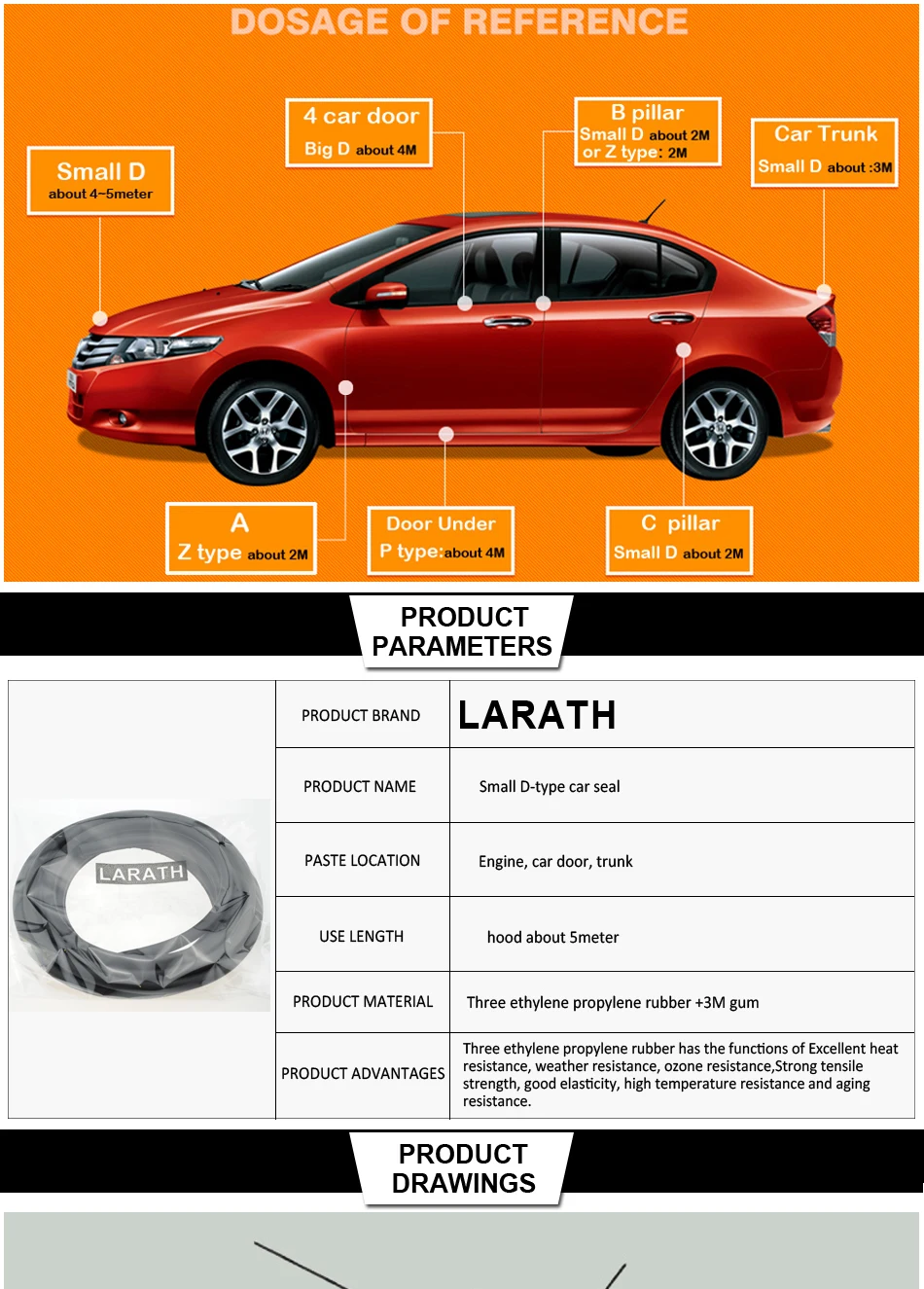 COLOR:Car Door Sealing Strip Weather Strip For Engine Hood Car Boot