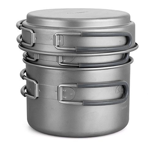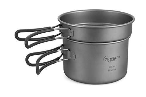Triple your cooking capability and efficiency with the Healthpro 3-piece titanium cookware set. It includes a 27 oz pot, a 40.5 oz pot and a 13.5 oz frying pan that also serves as a 2-way lid. By pairing our popular titanium pots with a titanium lid-pan we've created a double boiler system that allows you to cook two items at once to save both time and fuel. The lid-pan is uniquely designed to nest on top of the pots to utilize the captured heat from the pot to cook food slowly and prevent burning. It's perfect for cooking various sauces such as those found in dehydrated meals, spaghetti sauce, no-burn oatmeal, and much more! Sometimes a few ounces or pounds make all the difference on a hike or climb. The Healthpro titanium cookware set is one of the lightest 3-piece sets weighting in at a total of 9.2 ounces.Feature