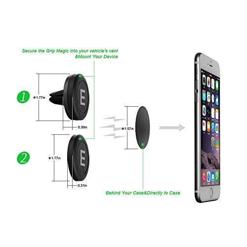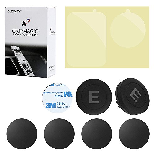 ELECCTV Car Mount, Universal Air Vent Magnetic Cell Phone Holder for Smartphone Devices and Mini Tablets, Black, 1+1