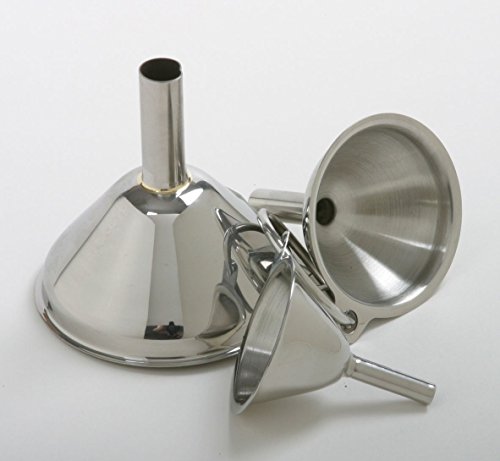 [Product Information]- Set of three stainless steel funnels. Ideal for filling small bottles and containers.