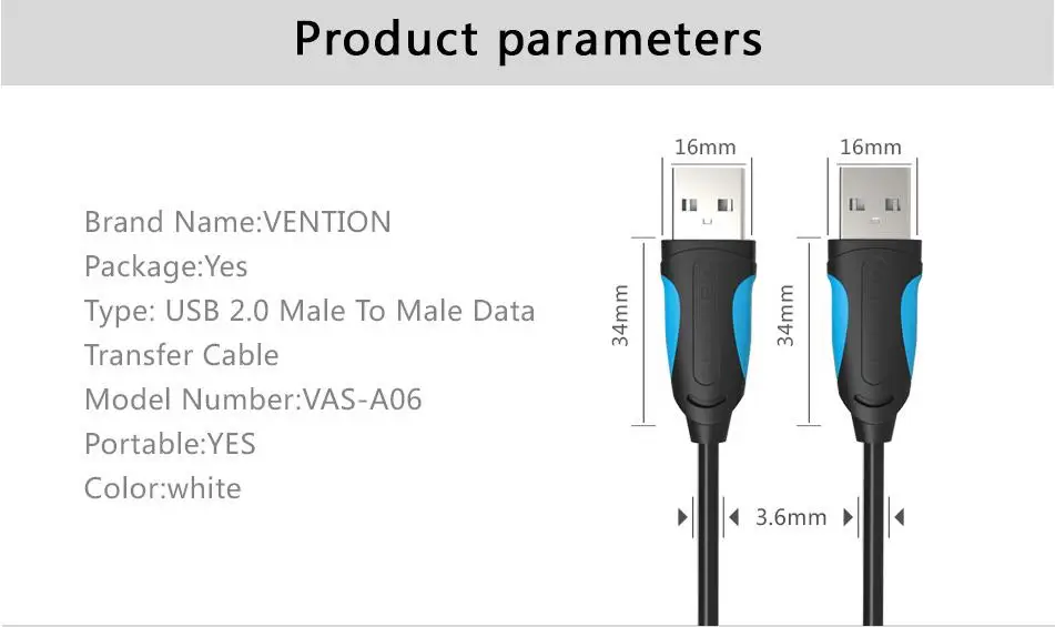 Product Name:Vention USB 2.0 Male to Male Data Cable