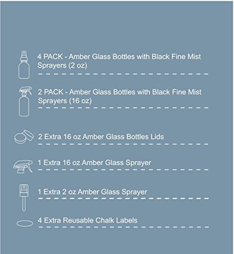 - GREAT VALUE Glass Spray Bottles - 2 Pack Amber Glass Spray Bottles 16 oz , 4 Pack Amber Spray Glass Bottles 2 oz, EXTRA Caps, Sprayers, Chalk Labels.