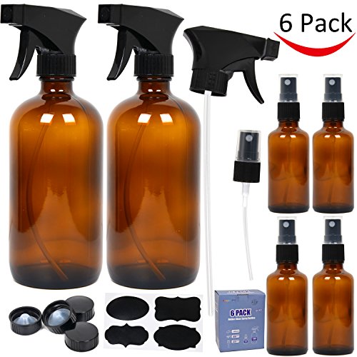 6 Pack Amber Glass Spray Bottles, 2 Pack 16 oz Empty Amber Spray Bottles and 4 Pack 2 oz Glass Amber Spray Bottles for Essential Oils
