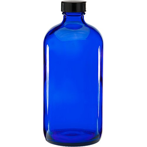 12 Pack 16 Ounce Boston Round Glass Bottles with cap (Cobalt Blue)