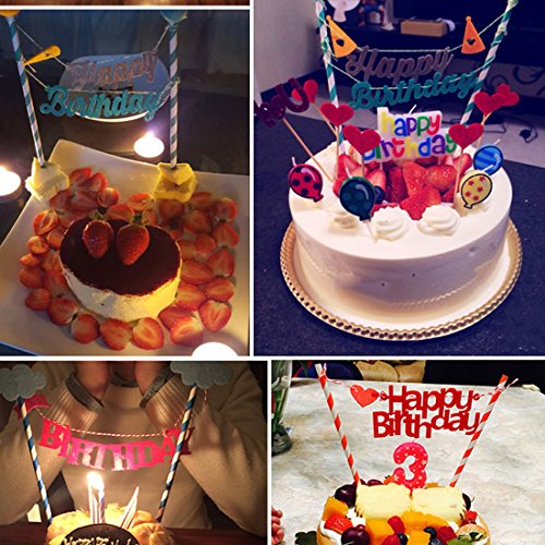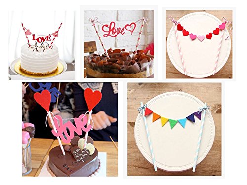 Handmade Bunting Cake Topper,Birthday Party Cake Decorations (Set of 10) By Shenglong
