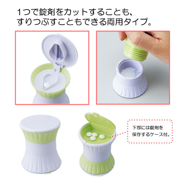 ●1つで錠剤をカットすることも、すりつぶすこともできる両用タイプ。