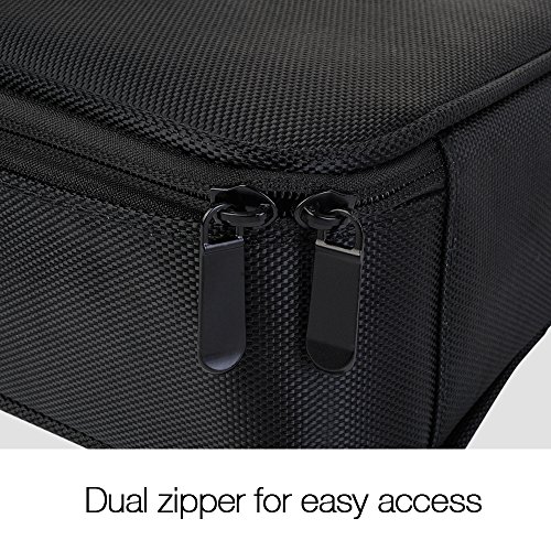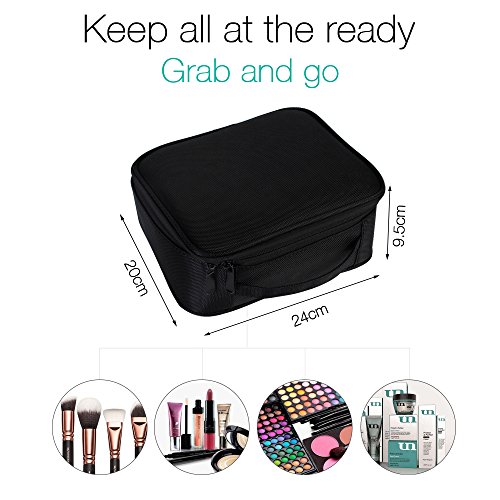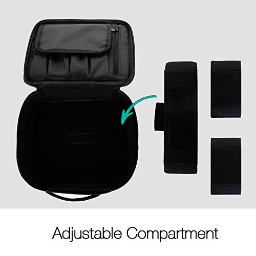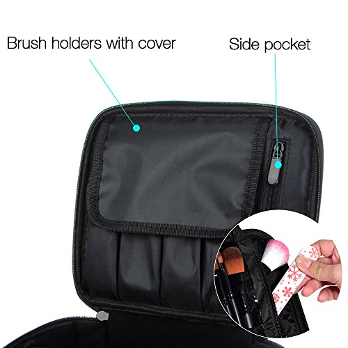 Portable Makeup Train Case Travel Size Cosmetic Bag Organizer with Brush Holder Pockets and Removable Dividers for Makeup Artist by Joligrace (Black Velcro)