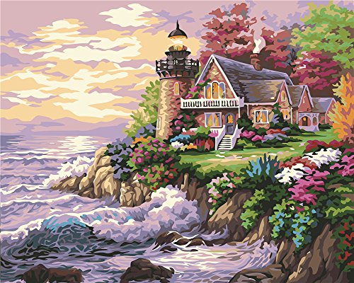 Komidea DIY Oil Painting, Children's Paint by Number Kits with Brush Paint, Beautiful Lakeside City DIY Painting Paint by Numbers without Frame 16x20inch