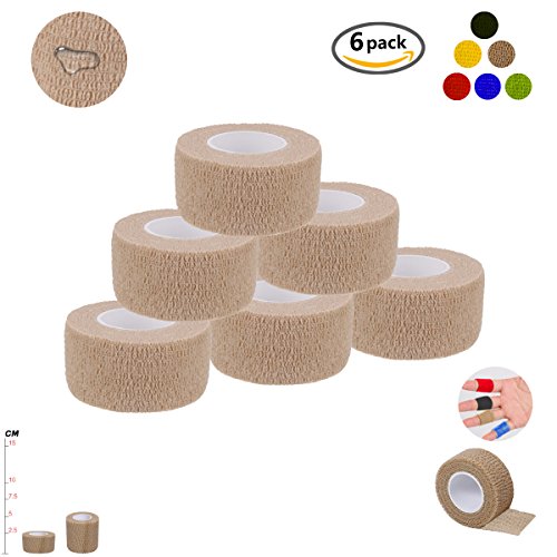 Self Adherent Wrap Tape Medical Cohesive Bandages Flexible Stretch Athletic Strong Elastic First Aid Tape for Sports Sprain Swelling and Soreness on Wrist and Ankle 6 Pack 1Inch X 5Yards(beige)