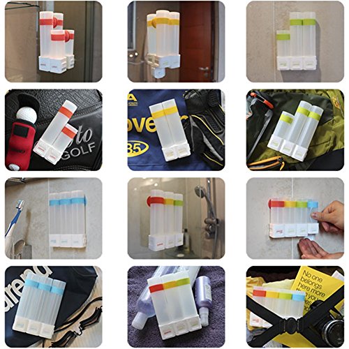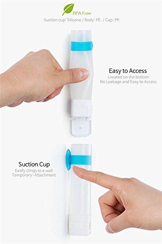 - * STRONG AND COLORFUL SUCTION CUP: Strongly attach the squeezable travel bottles to mirror or wall for easy reach in the shower with hands free. PERFECT for who use the gym / travel