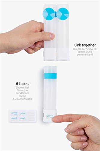 - * 65 ml/2.20oz HIGH CAPACITY, with 4 label options (Shower Gel, Shamp, Cond, Lotion) & 2 blank labels,making distinguishing liquids quick and easy