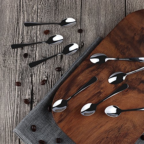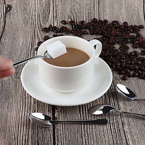 - Small espresso spoons perfect and elegant to use for tea, coffee, cappuccinos, espressos, dessert, appetizers. Great for sugar, cream and stirring. It can work as a baby spoon as well.