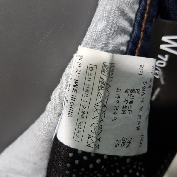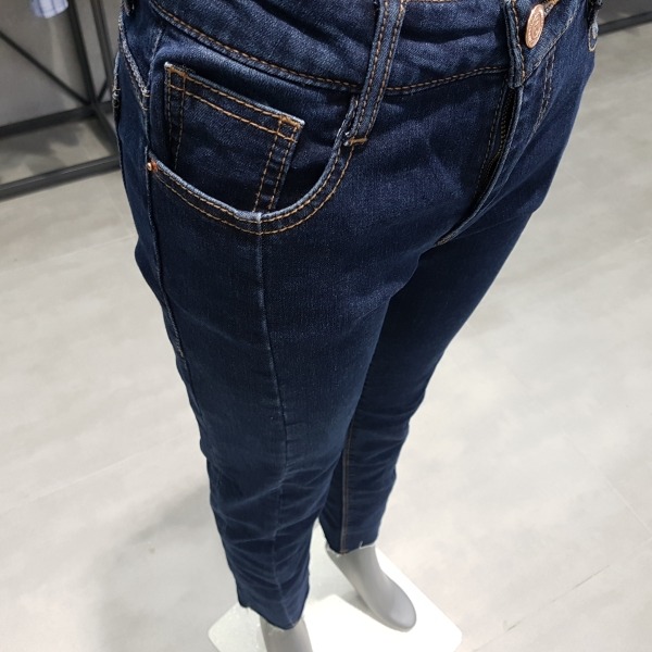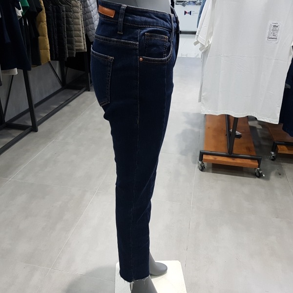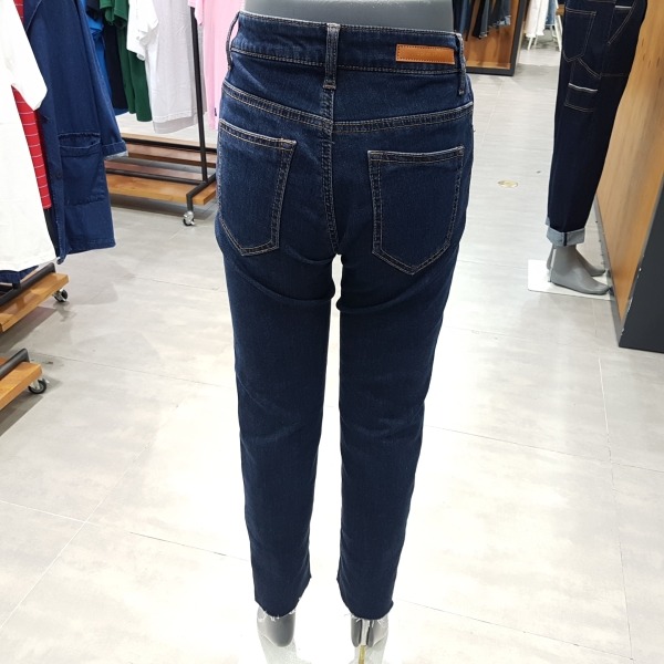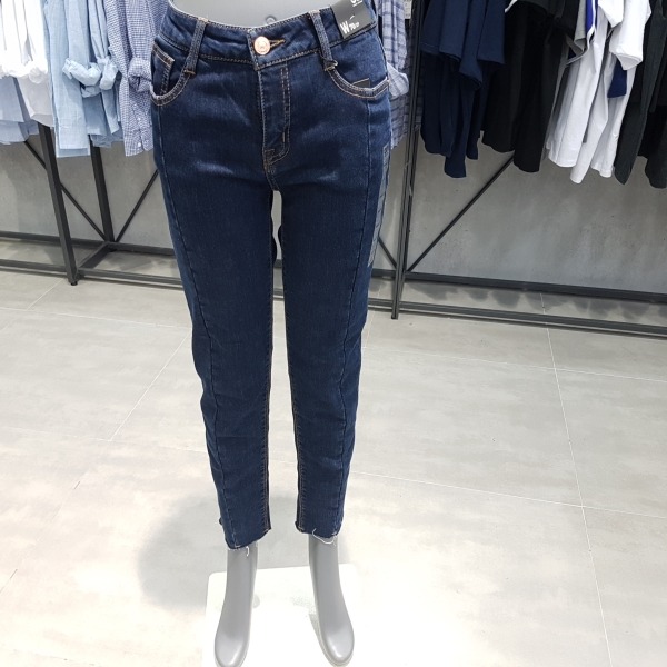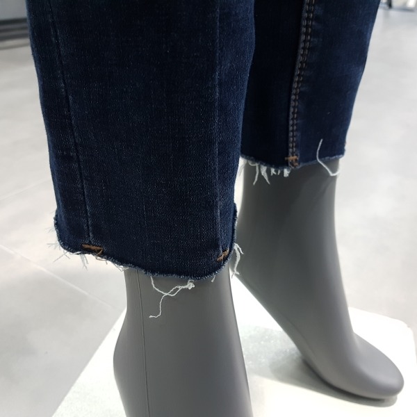 미디엄 인디고 바이오 워싱의 크롭 스트레이트 핏.앞중심에 절개가 있어 전체적으로 슬림해 보임.밑단은 언밸런스 컷팅이 되어 있어 발목이 돋보이는 디자인.데일리 아이템으로 유용한 제품.
