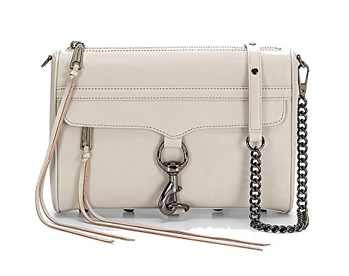 This soft leather handbag features seam details and a spring-lock flap at the front pocket. Metal feet and pale gold-tone hardware. Extra long leather zip pull. Detachable chain strap and zip main compartment closure. Lined interior features zip pocket and 3 patch pockets.
