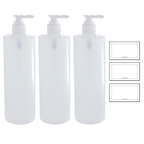 16 oz Clear Natural Refillable Plastic Squeeze Bottle with White Lotion Pump Dispenser - (3 Pack) + Labels