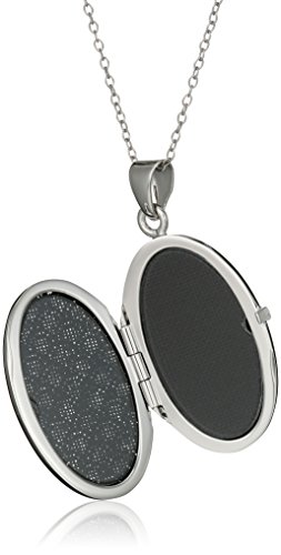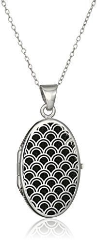 Italian-made sterling silver necklace featuring oval hinged locket with scalloped enamel inlay