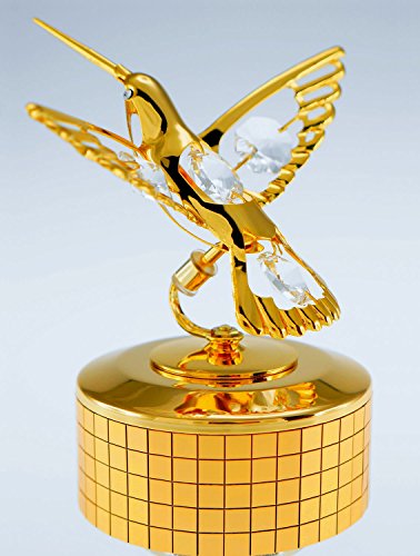 Musical Rotating Hummingbird 24k Gold Plated Figurine on Tiled Base with Sparkling Spectra Crystals by Swarovski