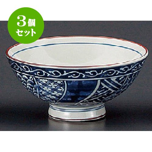 원본상품명: 3個セット 飯碗(磁器) 古染七?祥瑞大平茶碗 [127 x 60mm] 和食器 料亭 旅館 ?食店 業務用