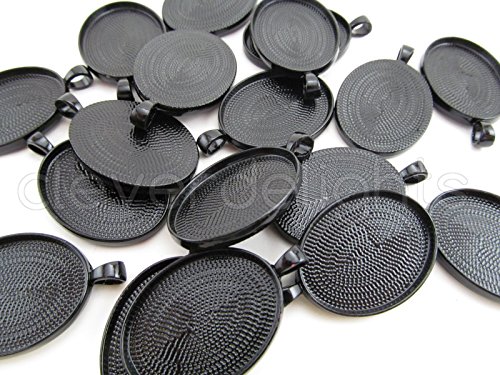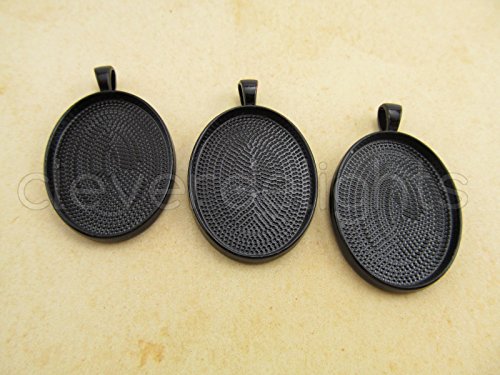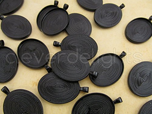 50 CleverDelights Oval Pendant Trays - Dark Black Color - 22 x 30 mm - Pendant Blanks Cameo Bezel Settings - Custom Jewelry Making 22x30mm