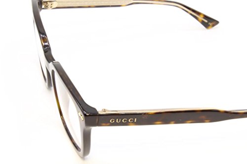 Product Description Brand Gucci has always remained true to its original philosophy-even while experiencing significant growth in recent years. By emphasizing innovation, originality, quality and value Gucci has refined its vision to earn worldwide recognition. Contemporary optical design, unparallel craftsmanship, outstanding warranty, and superior customer care defines Gucci. Gucci has made the ascent from humble beginnings-a boutique optical design company-to its present position: a worldwide leader in affordable luxury eyewear. Gucci uses state-of-the-art materials to craft their signature eyewear frames: premium cellulose acetate, ultra-lightweight titanium, and color-rich stainless steel. Gucci lenses are constructed from impact-resistant prescription material and provide 100% UV protection. They're also scratch-resistant and coated with superhydrophobic and anti-reflective treatments at no additional cost. From the earliest design conversations, sophisticated eyewear brands such as Gucci develops innovative designs that feature layers of depth through the finest materials in optical. This commitment to craftsmanship delivers unmatched quality and timeless style that transform glasses from pure function to coveted pieces. 0