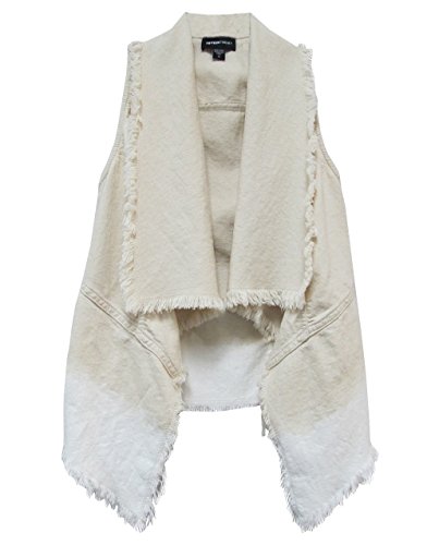 Product Description Frayed edges further the casual feel of a drape front vest that will be the perfect finishing touch to all of your daytime ensembles. Sleeveless Length: 24 1/4 inches (size M) 100% Cotton Available in natural Made in the USA of imported fabric Hand wash Drape neck Open front Size Large 0