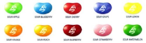 -. Feature : Gourmet Jelly Beans from Jelly Belly Company. / Assortment of 5 NEW Sour flavors: Flavors include: Sour Apple, Sour Cherry, Sour Grape, Sour Lemon, Sour Orange. / Approximately 400 pcs per pound. / Case contains 10 pounds of Jelly Beans.