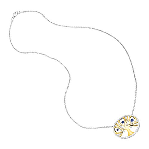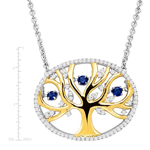 Let the tree of life be your guide to wisdom, strength, and harmony throughout your life. Round-cut created sapphire, totaling 1/3 ct, floats between the 14K gold-plated sterling silver branches of this tree of love pendant while round-cut cubic zirconia gives the piece extra sparkle in a sterling silver setting. Feature piece measures 13/16 by 1 1/16 inches with a total length of 17 inches.Feature