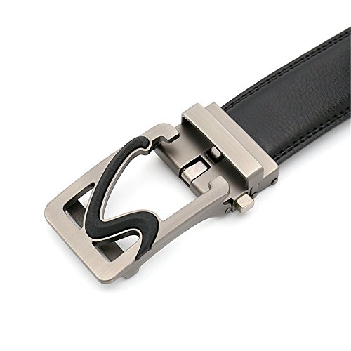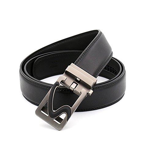 Men's Comfort Genuine Leather Belt with One Click Buckle, Fit for 27-46" (Black-10)