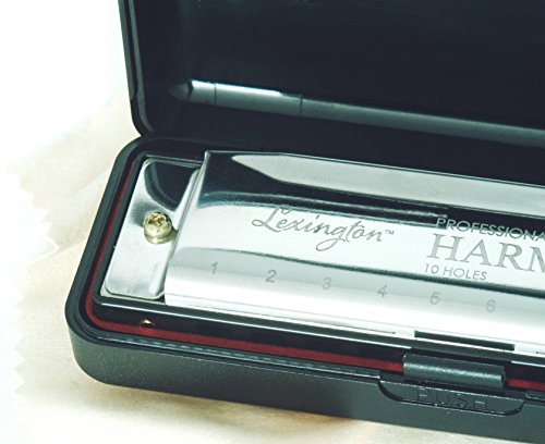 Product Description Each batch of Lexington Diatonic Blues Harmonica's (HM-03-10) are professionally inspected for the highest quality. The HM-03-10 features multipoint support along with proper sealing to provide an air-tight use preventing leakage. The stainless-steel plate is chrome plated silver that contains a thicker coating to prevent oxidation, rust and improved abrasion resistance to keep your prized harmonica looking good. The Lexington Blues Harmonica features a unique single hole design that effectively controls suction flow to allow for a full level of voice. Our selection of phosphor copper alloy used for the spring provides for greater sensitivity. The HM-03-10 also includes a carrying case, instruction manual, and cleaning cloth to keep your harmonica clean. 0