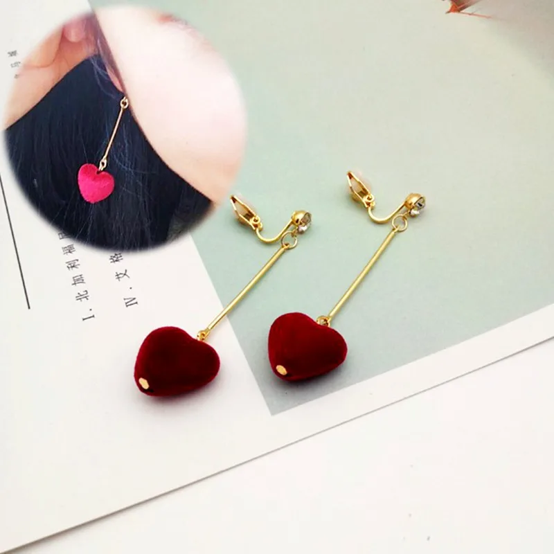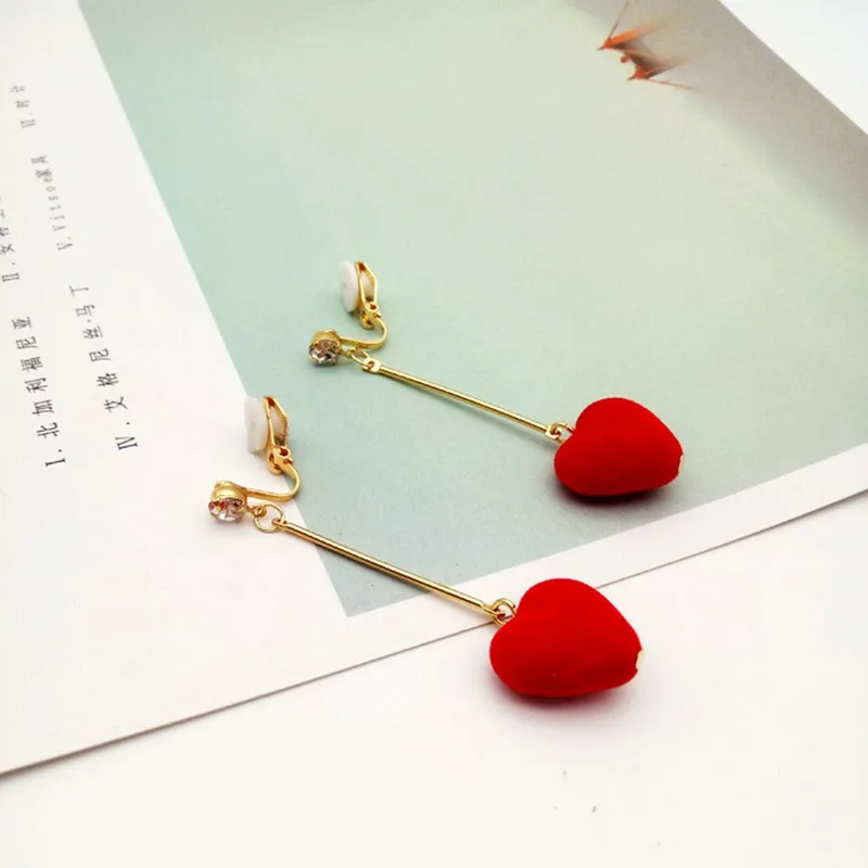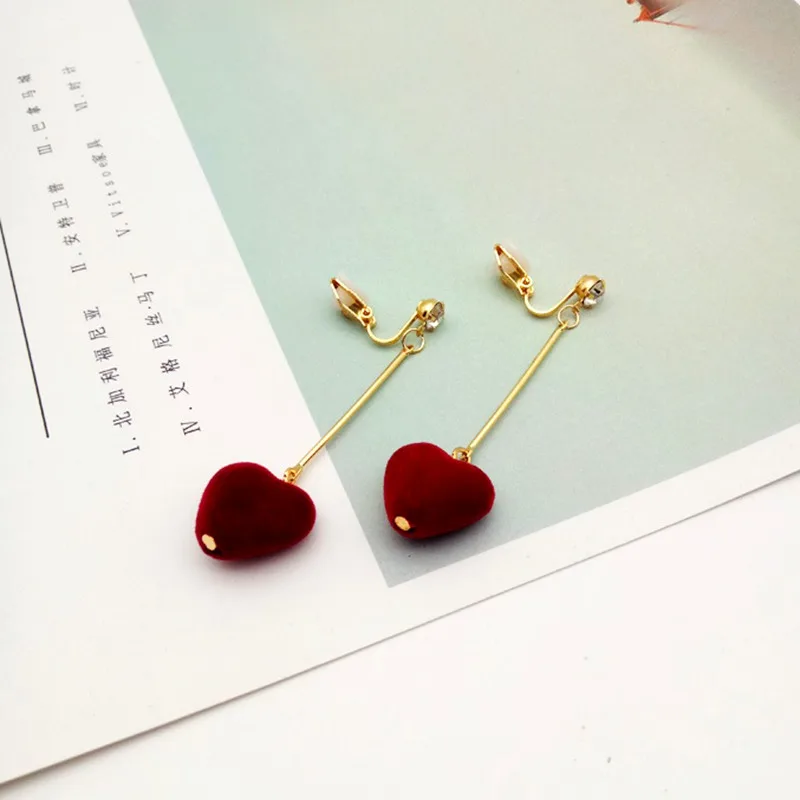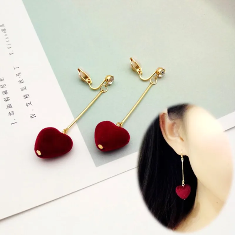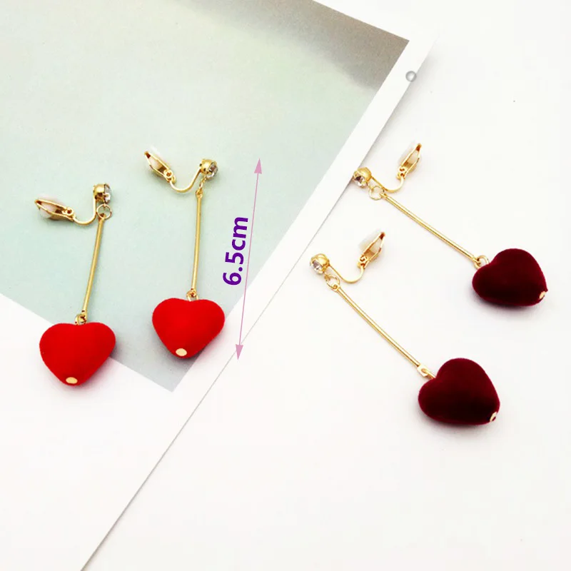 Product Type:Dark Red Heart Love Earrings No Pierced Ear Clip For Women