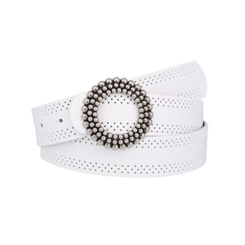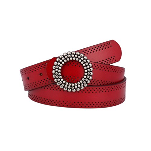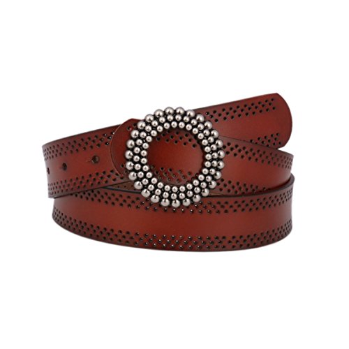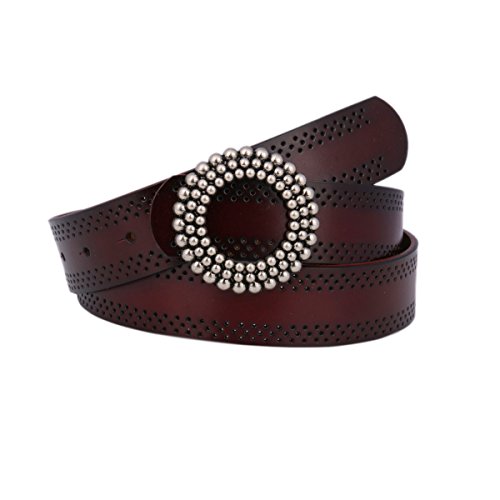 Binding : Apparel Product Description This wide belt made of high quality faux leather, fashion hollow design on both sides. With hook buckle closure, easy to take off and wear . The clasp is very sturdy. 7 holes of each belt, you can adjust it as you need. You can worn it with a variety of outfits. woolen coats, Windbreaker, down jacket, and other clothing. This wide silhouette slims your waist and the sturdy buckle fastening keeps it in place. Safe and Comfortable, providing you the most charming look. Best gift for yourself and friends. Belt size:length:105(41.33inches), width:3.3(1.29inches). Diameter of buckle:5.5cm(2.16inches). 0