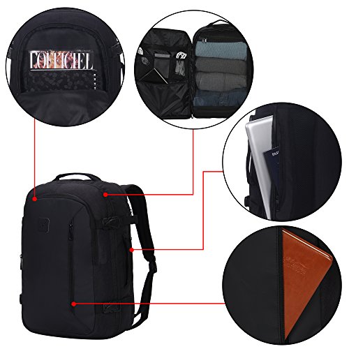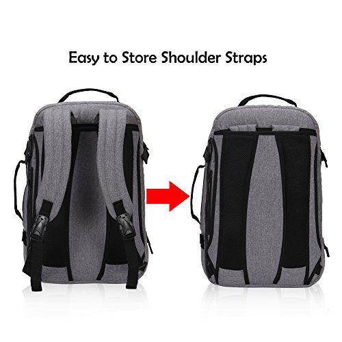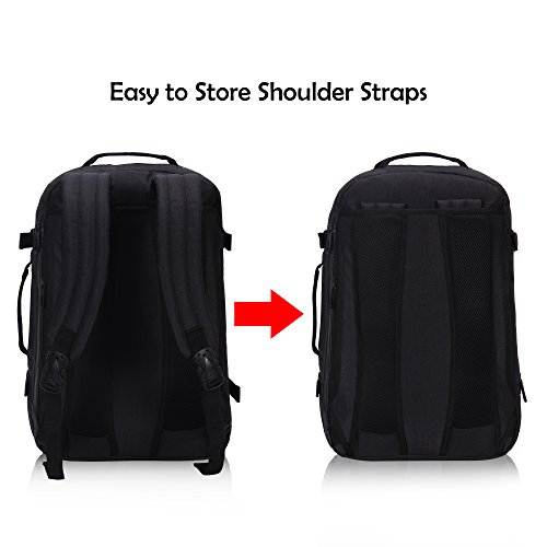 -. Feature : Waterproof polyester for durability, built to prevent your travel essentials without damage and moisture; 26 L capacity is perfect for smaller travelers or packing for a few days short trips; multiple functions, can also use as a business backpack, laptop backpack or gaming backpack etc. / Dimensions: 18.5 x 12.6 x 7.9 inches/ 47 x 32 x 20 cm; design to fit the allowed maximum size of most smaller IATA flights, fit in the overhead compartment as well as the under seat storage in flight; Package: 1 x backpack / 4 carrying options in 1 carry on backpack, back slip panel for securely stacking on wheeled lage; dual hide-away contoured backpack straps, top and side carry handles; padded back panels with breathable mesh for added comfort / 4 exterior compression straps are carefully placed to provide maximum compression and reduced stress on the zippers; 2 front zip compartments for quick access your last minutes item; Interior features 1 mesh zip compartment to organize your essentials for a weekend out; 1 zip pocket, 3 elastic bands and 3 mesh slip pocket for store your travel accessories, from cables to toiletry / Back with 1 waterproof zipper secret pocket can store large phones or other valuables; Rear waterproof zipper fully padded 15 inches fleece laptop compartment, design to protect your device from knocks and bumps; Laptop sleeve dimension: 17 x 10.5 x 1.5 inches