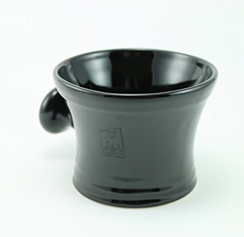 Ceramic Black Shaving Bowl / Mug with Handle Knob-- Comes with 3 Oz 97% Natural Ocean Driftwood Gbs Soap -- Fits up to a 4 Oz Soap
