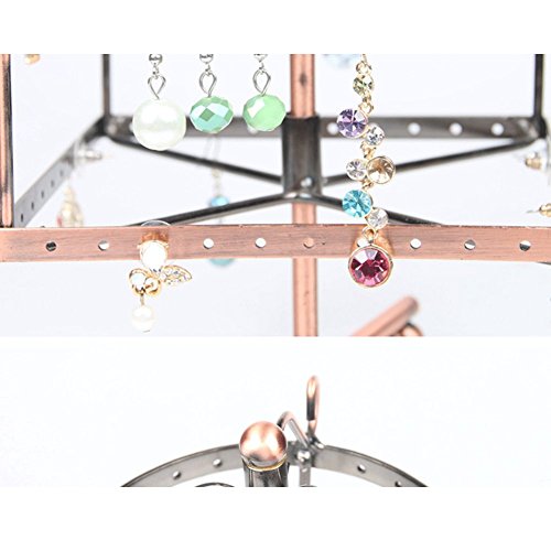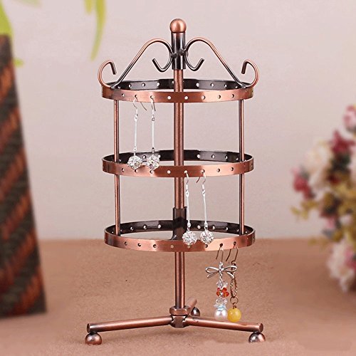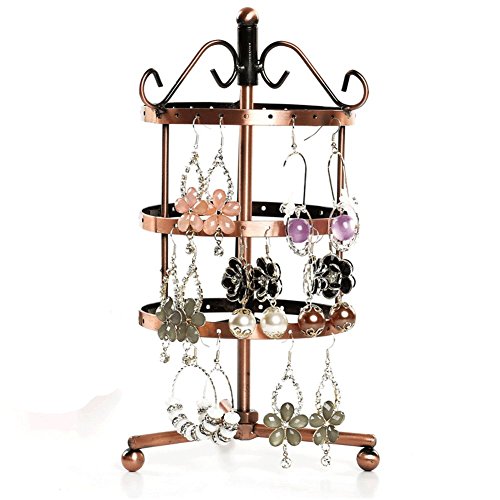 Metal Jewelry Holder, 3 Tiers Rotating Spin Earrings Holder 72 pairs Earring Organizer Jewelry Stand Display Rack by HomRing (Bronze)