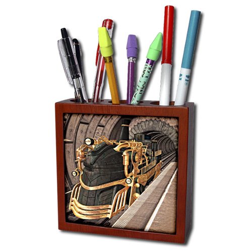 3dRose A Steampunk Train Station Tile Pen Holder, 5"