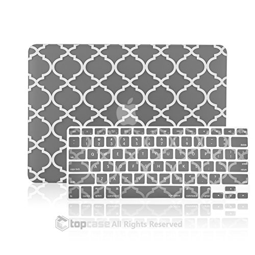 TopCase 2 in 1 - Quatrefoil / Moroccan Trellis Gray Ultra Slim Light Weight Rubberized Hard Case Cover and Matching Color Quatrefoil / Moroccan Trellis Keyboard Cover for Apple MacBook Pro 13.3" with Retina Display Model: A1425 and A1502 (NEWEST VERS
