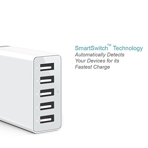 5 Intelligent USB Port Design: detects your device automatically to deliver its fastest possible charge speed up to 2.4 amps per port or 8 amps overall.