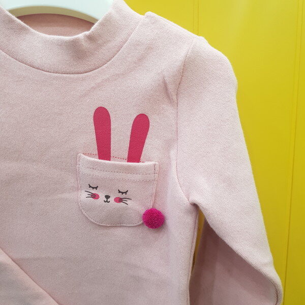 토끼주머니가 포인트인 티셔츠입니다.치마레깅스나 원피스에 코디하시면 좋습니다.