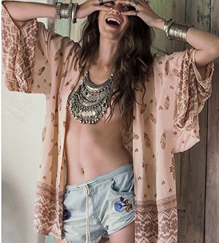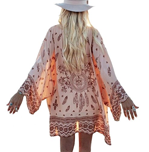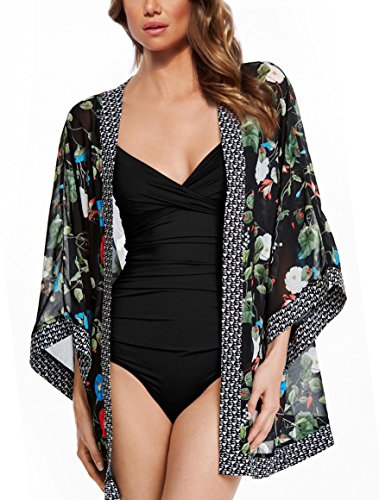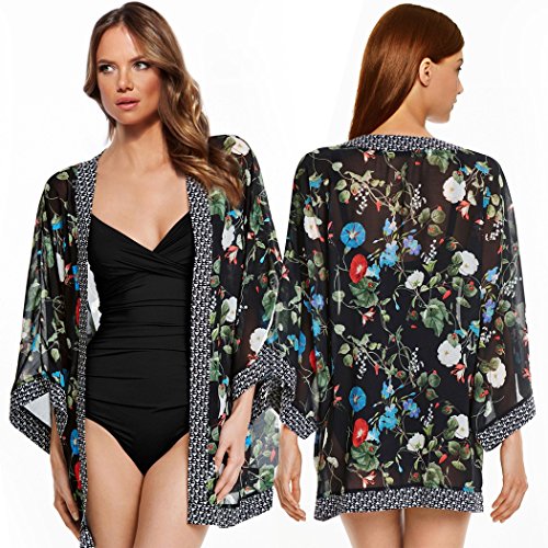 Yonala Womens Printed Beachwear Summer Chiffon Swimsuit Cover Up Kimono Cardigan