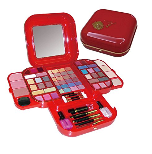 44 eye shadows, 3 blushers, 3 press powders , 1 lipstick, 1 mascara, 1 eyeliner, 1 eye pencil, 1 lip pencil, 2 lip glosses, 12 lip colors , mirror included , great for make up veterans, new comers and anyone in between. Makes a great gift.Feature