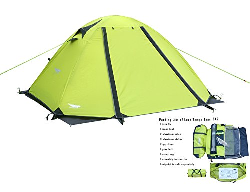 Mesurements:Floor,55.1 * 82.6 in.;Peak Height,43.3 in.;Vestibule:8.7 sq.ft+6.8 sq.ft; Packed Weight:5.7 LBs; Accessories:2 guylines,12 aluminum stakes; FOOTPRINT is a must-have to increase a tent's life ;Best Use:Car Camping,Backcountry Adventures,Alpine,Backpacking;Please scroll down to get the designer¡¯note for this version of Luxe Tempo Tent (footprint,sleeping pads and bags are for better presentation and are sold seperately)