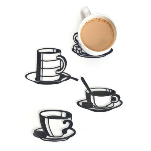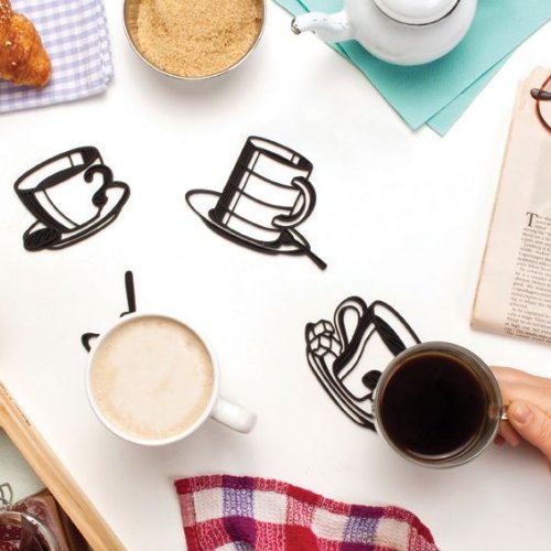 -. Feature : Set of 4 Silicon coasters for mugs and glasses / Each in diffrent design. / Made of silicon. / Optional hanging when not in use. / Dimensions:12x8x1.2cm