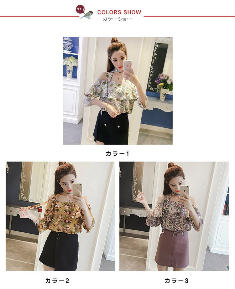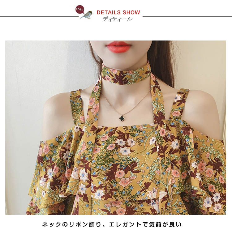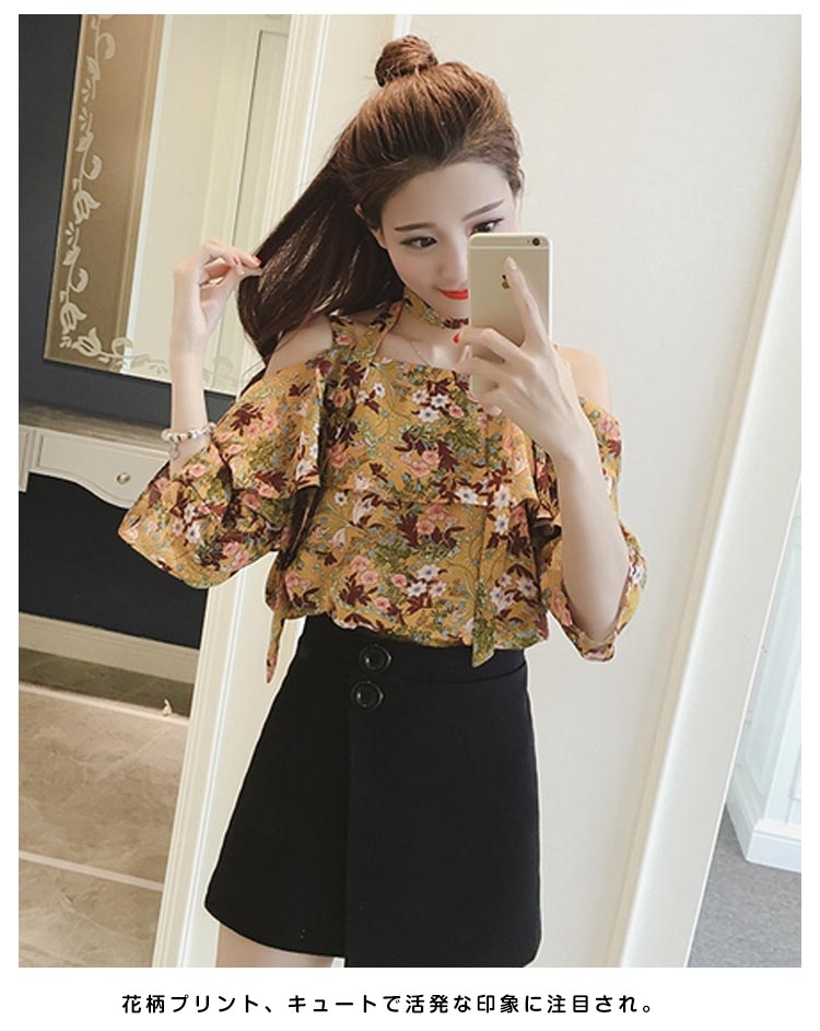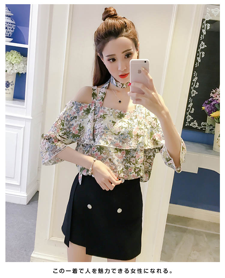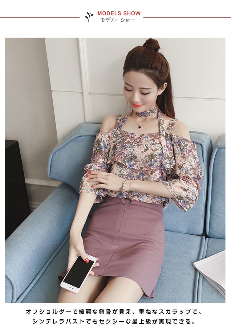 | 夏の熱情がたっぷりなオフショルダーブラウス。オフショルダーで綺麗な鎖骨が見え、重ねなスカラップで、シンデレラバストでもセクシーな最上級が実現できる。花柄プリント、キュートで活発な印象に注目され。この一着で人を魅力できる女性になれる。 | |