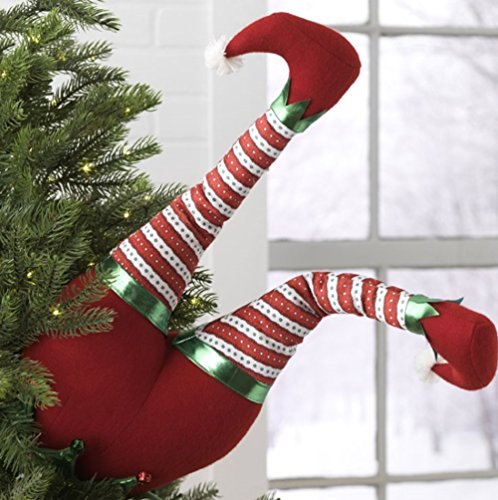 Red Plush Elf Butt Pick Accent Christmas Tree Ornament Decor, 21 Inch x 9.5 inch on Bendable stick