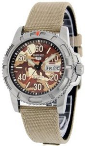 세이코import Seiko Mens SRP221K2 Beige Nylon Analog Quartz Watch with Brown Dial【병행수입】