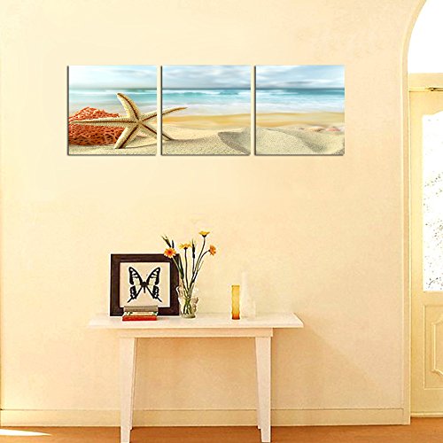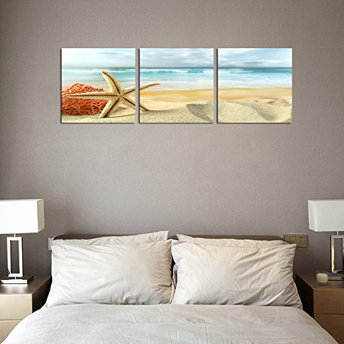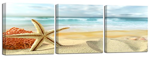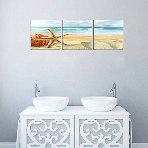 High Definition Canvas Wall Art 3 Panels Beach Starfish Bathroom Bedroom Framed Painting Ready to Hang for Wall Decor.