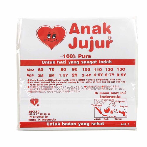 - Feature : A perfect weight bodysuit for daily usage during any season of the year. This is a wonderful outfit for keeping in baby-bags in order to be ready for any occasion. / 100% Cotton. Easy to put on and taking it off is a breeze. Also, the material keeps its shape well and is just right for active children who need comfort and freedom of movement. / Cute and colorful designs are sure to brighten up your child's day! Each of Mademoiselle Papillon's colorful and cheerful illustrations is created, layer by layer, using hand-applied silk screens. / Anak Jujur ("Happy Child") products - and its sister brand Mademoiselle Papillon ("Miss Butterfly") - are made with soft, premium 100% cotton for the utmost in comfort (we even make our tags from cotton so that they are always soft and will never irritate your child's sensitive skin). / Great for your own use and they make wonderful gifts as well.