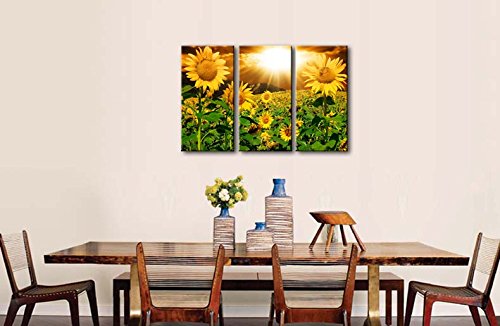 Canvas Print Wall Art Painting For Home Decor Bright Sunflower Yellow Sunshine 3 Pieces Panel Paintings Modern Artwork The Picture For Living Room Decoration Flower Pictures Photo Prints On Canvas